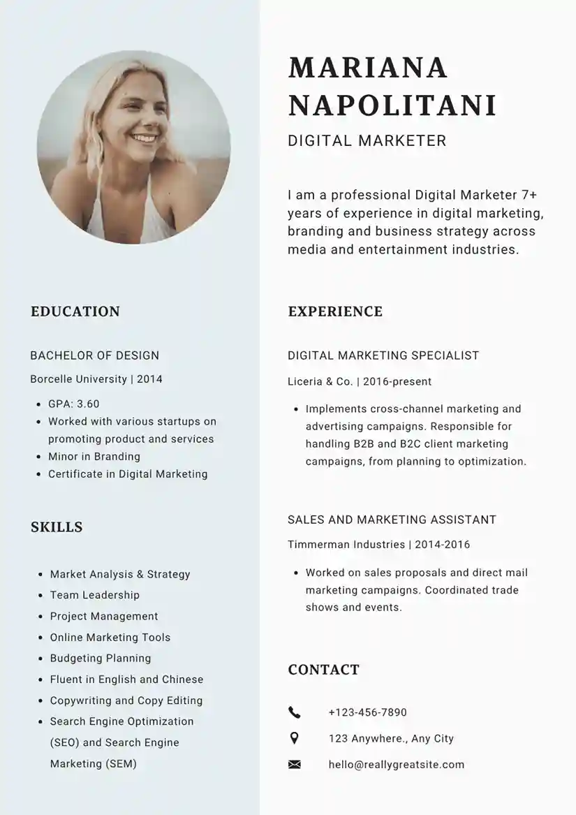 Digital Marketing Resume Template